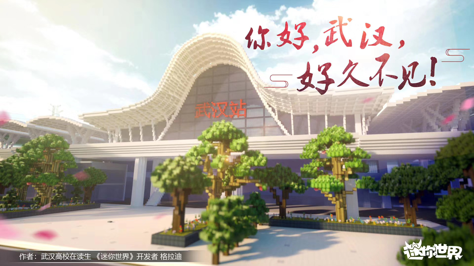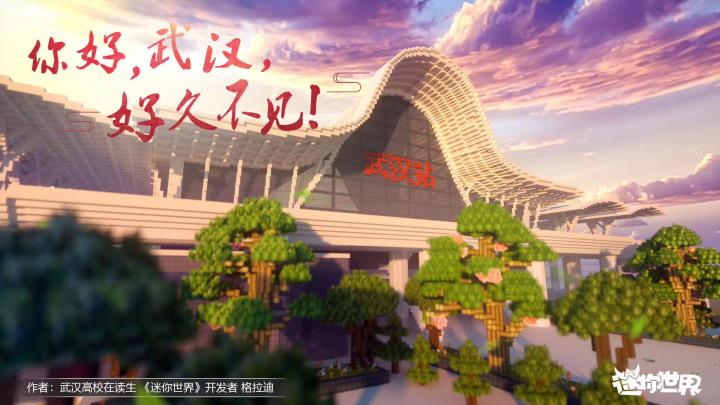 在《迷你世界》中用方块还原了武汉站